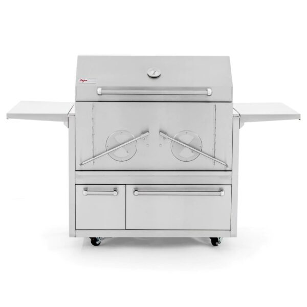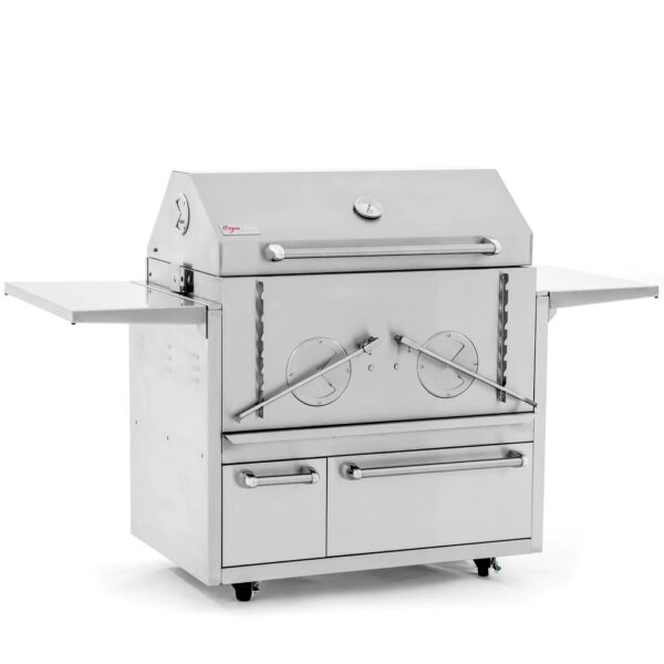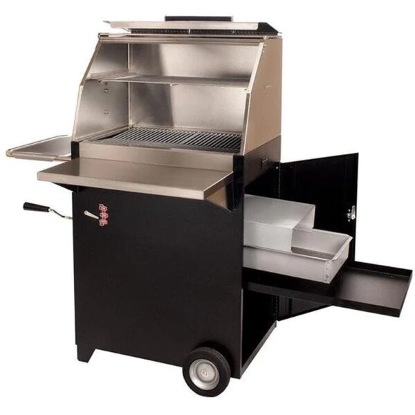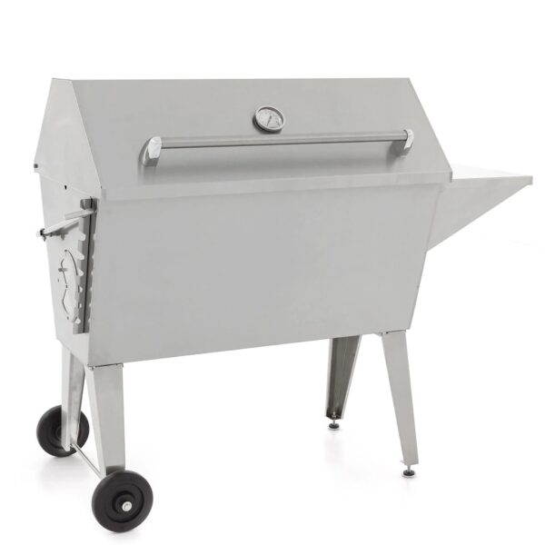Configuration: On Cart Key Features Stainless Steel Construction 1194 sq inches of total cooking surface Two individually controlled fireboxes Adjustable