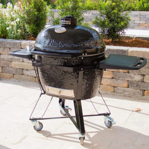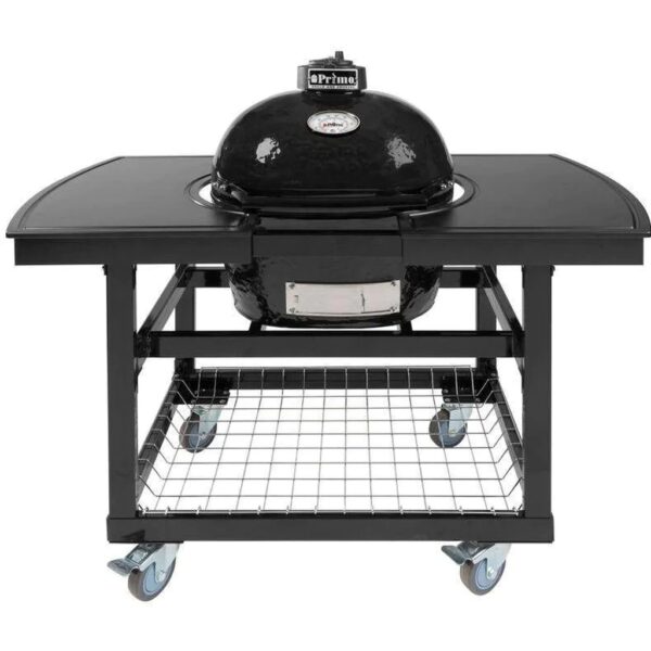 Primo Oval Junior 200 Ceramic Kamado Grill On Steel Cart With 2-Piece Island Side Shelves – 774