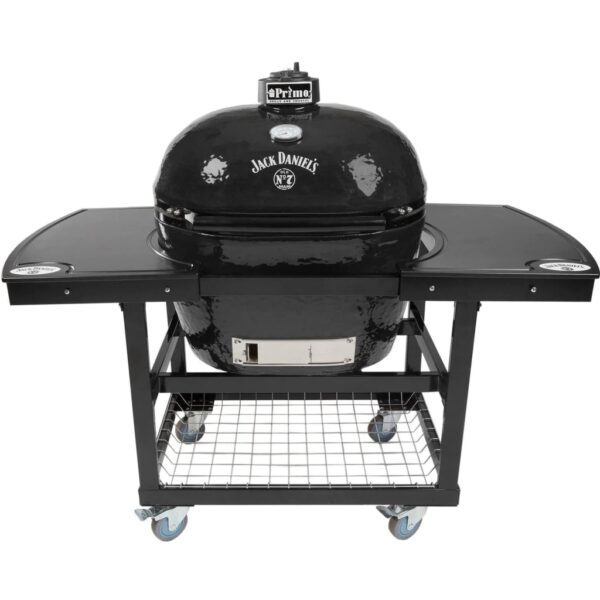 Primo Jack Daniels Edition Oval XL 400 Ceramic Kamado Grill On Steel Cart With Stainless Steel Side Tables And Grates – 900