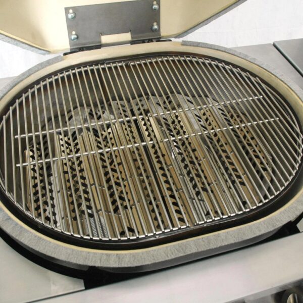 Size: Oval Junior Configuration: On Cradle With Shelves Key Features The unique oval shape allows you to grill, bake, roast