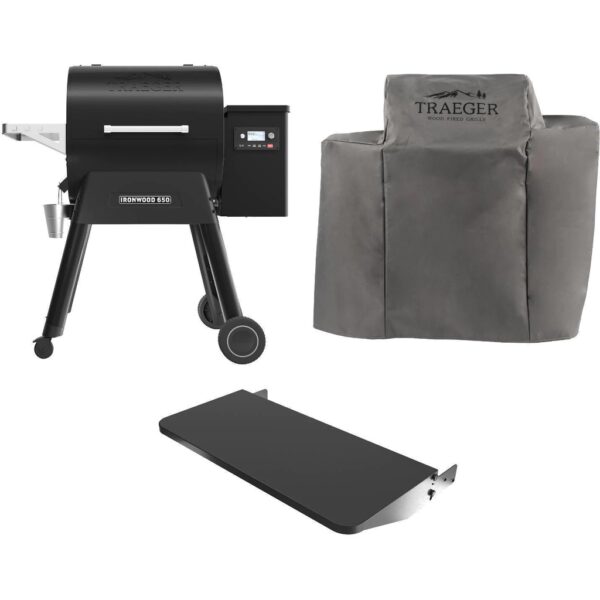 Traeger Ironwood 650 Wi-Fi Controlled Wood Pellet Grill W/ WiFIRE, Pellet Sensor, Front Shelf & Grill Cover – TFB65BLF + BAC362 + BAC505