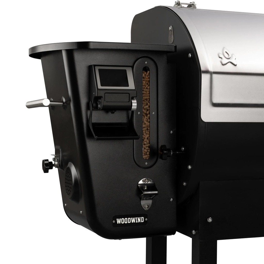Take your grilling game to the next level with the Camp Chef Woodwind WiFi, featuring all of your favorite Woodwind series features, plus a full-color display, WiFi and Bluetooth-enabled PID controller that lets you control your cooks from the palm of your hand. Set temperatures, adjust smoke levels, set timers and even receive notifications when your meat reaches desired temperature using the Camp Chef Connect app on your mobile device. With the turn of a knob or tap of a finger you can set temperatures as low as 160 degrees for smoking and up to 500 degrees for the perfect sear. Smart Smoke technology keeps your Camp Chef pellet grill within 15 degrees of your selected temperature. Adjust smoke intensity just as easily with 10 levels to choose from. The PID controller also allows you to connect and monitor up to 4 meat probes and grill temperatures simultaneously, it even has a built-in cover to protect the display when not in use. The Woodwind WiFi is constructed of durable powder coated steel with a stainless steel lid and fire box. It features a 19 1/2 by 34 inch enameled-steel primary cooking area and a 2-piece nickel plated upper rack for 1236 square inches of total cooking space, all heated by up to 25,000 BTUs of cooking power. The 2-piece upper rack is also height adjustable, giving you more room for taller food without having to completely remove the upper rack. The automatic auger dispenses pellets as needed from the high capacity hopper, which holds up to 22 pounds of pellets at once and has a viewing window and pellet purge feature for emptying or changing out pellets. The hopper even has a built-in bottle opener and a chord wrap for extra convenience. Slide and Grill technology allows you to switch between direct and indirect flame cooking with just the pull of a knob. A continuous fan insures that your grill stays evenly heated and smoky, so every bit of food is perfectly cooked. When you are done cooking, clean up is easy, thanks to the exclusive Camp Chef ash cleanout system. Simply pull open the trap door with the side knob and empty the ash cup underneath the grill. This grill also features a pair of large, heavy-duty wheels and a pair of swivel casters for easy rolling and maneuverability, and a powder coated steel bottom shelf. Includes 4 stainless steel meat probes. This Woodwind WiFi also includes a Sidekick, which has a 30,000 BTU cast aluminum burner and 231 square inch True Seasoned griddle surface. Remove the griddle plate to use the Sidekick as a powerful stove, great for frying or boiling. The Sidekick also has matchless ignition using a fully adjustable heat-control knob, and Wind Baffled Technology to prevent your burner from being blown out. A hose, regulator, and holding bracket are included for a 20-pound propane tank (tank not included).