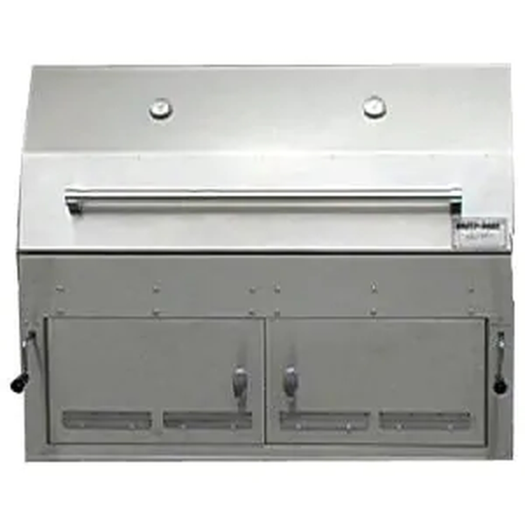 This Hasty-Bake Hastings Built-In Charcoal Grill is perfect for slow, indirect cooking as well as conventional grilling. The Hastings features all 304 grade stainless construction, 1194 sq inches of total cooking surface; stainless steel cooking grids; two individually controlled fire boxes which allow for simultaneous direct and indirect cooking; 40. 75 x 9. 75 inch removable warming rack; rollback hood design to allow for unobstructed access to the entire grilling area; double doors on front to allow for easy access to charcoal and cleaning; and dual thermometers guaranteed to be 99 percent accurate. 10 year warranty. Cutout Dimensions (in inches): 44 W x 21 1/4 D x 18 H. Grill must be supported from the bottom.