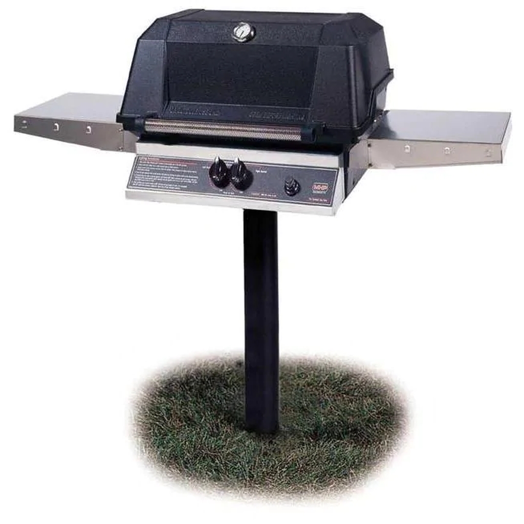 HomeGas GrillsPost Mount Gas Grills MHP WNK4DD Natural Gas Grill With Stainless Steel Shelves And SearMagic Grids On In-Ground Post