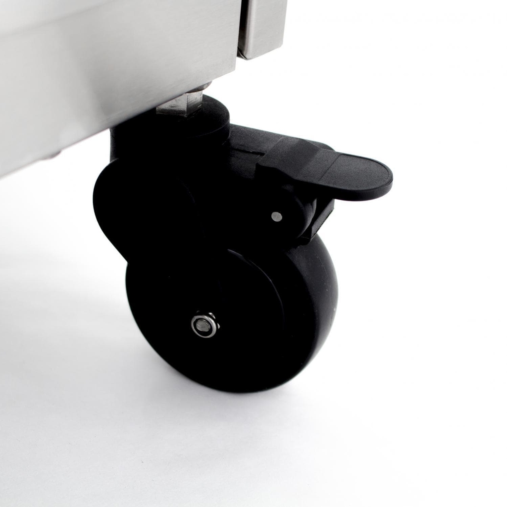 - 304 stainless steel construction with cast aluminum end caps and a fully-enclosed powder-coated cart
