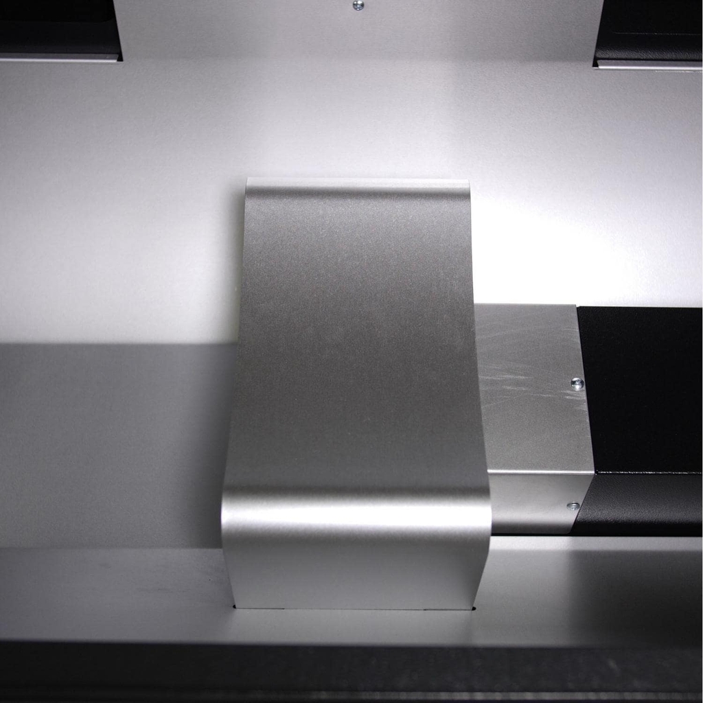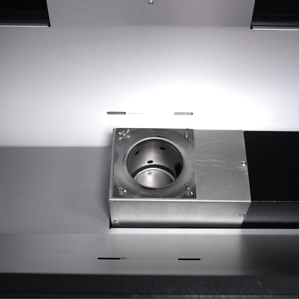 - Downdraft exhaust system keeps more smoke in the grill and helps maintain an even temperature efficiently