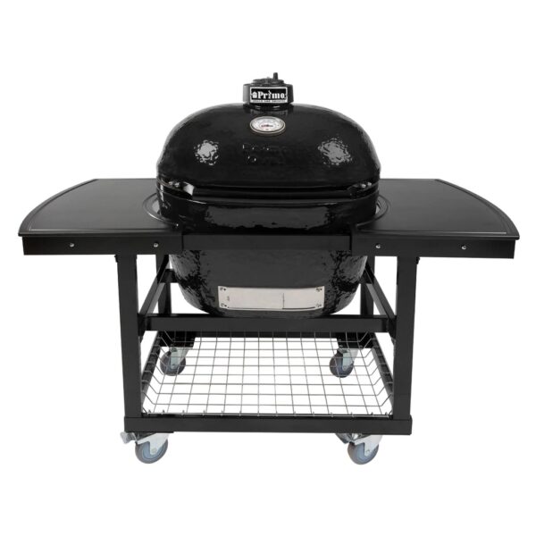 Primo Oval XL 400 Ceramic Kamado Grill On Steel Cart With 2-Piece Island Side Shelves And Stainless Steel Grates – 778